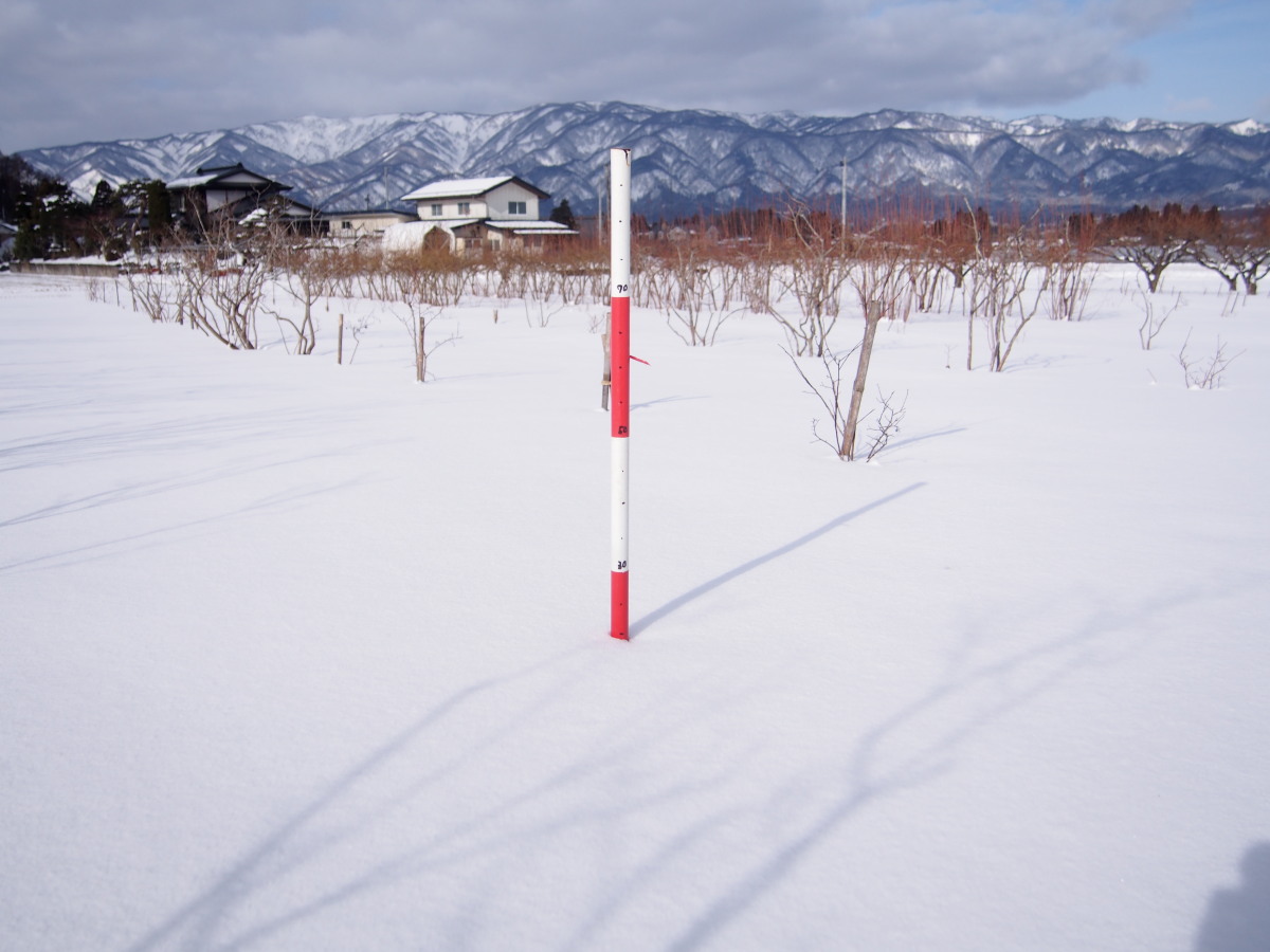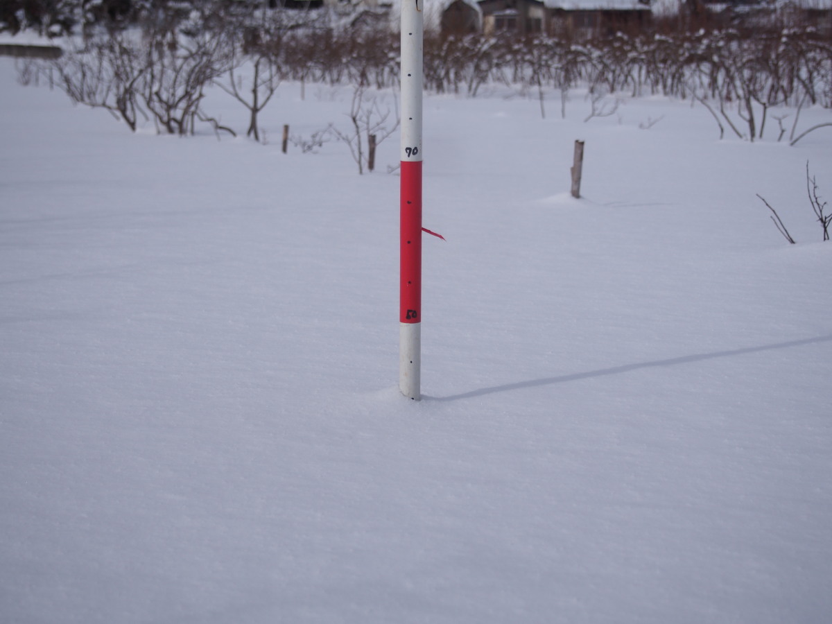 今日の積雪は40pです。前回よりだいぶ増えています。 各地、大雪になっていますがこの付近はあまり降らず、 今の時期としては少なく、今の所少し安心しています。 ただ雪の期間が、まだ1ヶ月くらいあるので、まだ安心はできません。 この程度で冬を過ごせれば、ビワの花も持ちそうですが、まだ心配です。