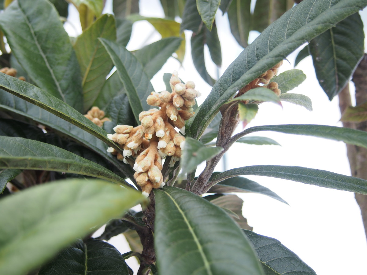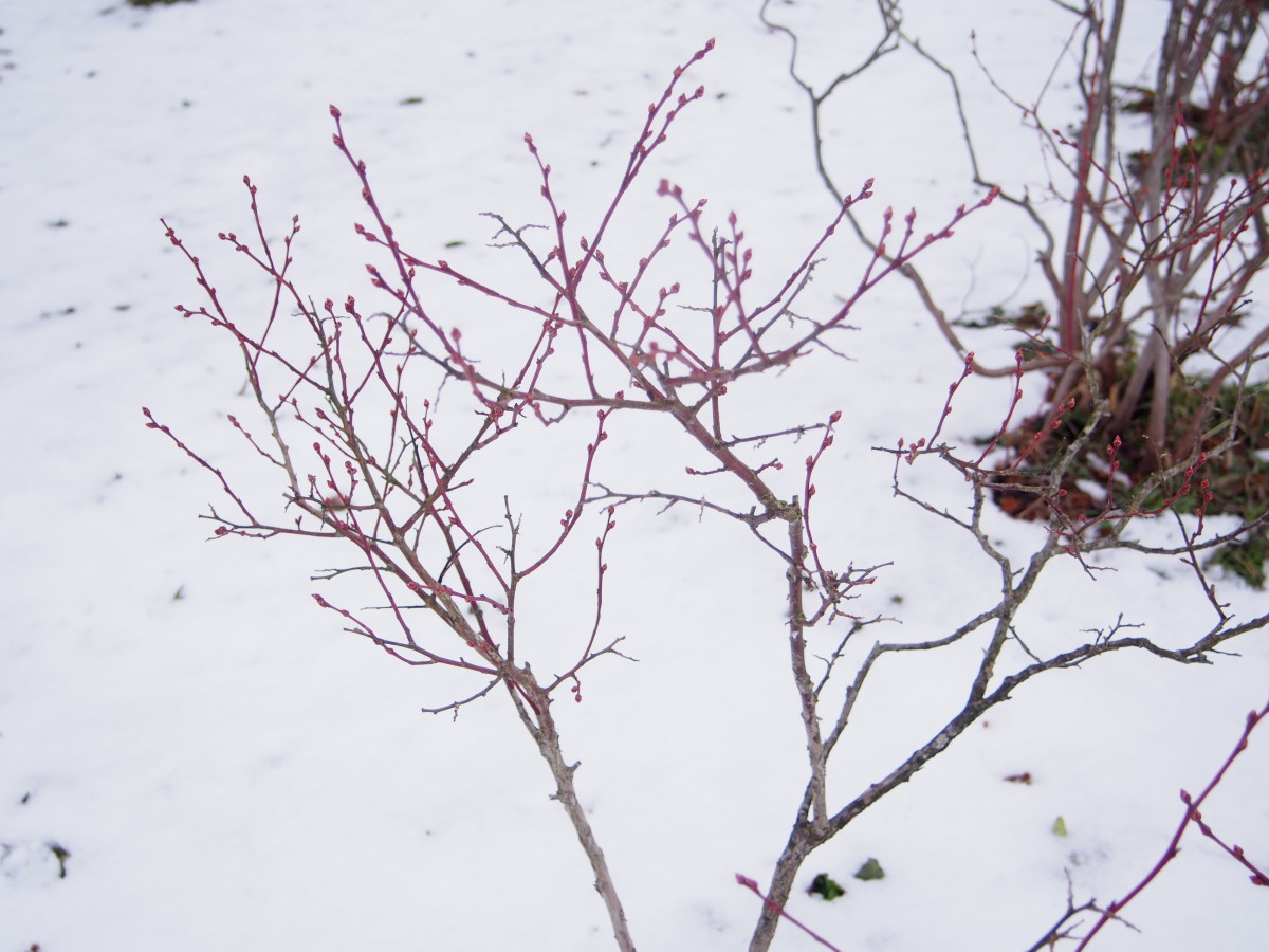 7日の夜から8日の雪で、又、真っ白になりました。 その前は圃場も乾き、剪定作業を始めましたが、この雪で当分休憩です。 暖かい日が続き、大きくなりかけた芽もこの雪で寒そうです。問題はありませんが。 ビワも一部に、枯れそうになっている花もありますが、全体ではないので残りそうです。